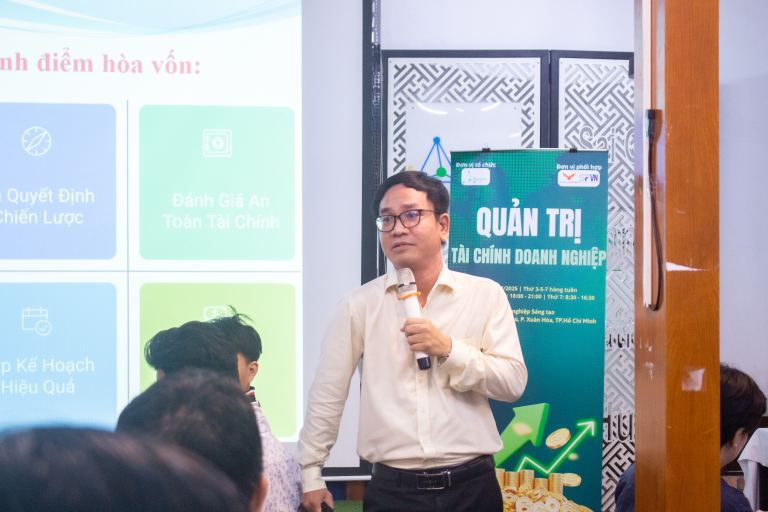 Chương trình Startup MasterTrack, do SIHUB – trực thuộc Sở Khoa học và Công nghệ TP.HCM phối hợp cùng Học viện Kỹ năng VTALK và SFVN tổ chức, tiếp tục hành trình đồng hành cùng các start-up trẻ bằng chuyên đề “Quản trị tài chính doanh nghiệp” do Thạc sĩ Nguyễn Anh Toàn hướng dẫn. Buổi học diễn ra sôi nổi, mang đậm tính ứng dụng cao, khi đưa ra những tình huống thực tế và công cụ tài chính cụ thể, giúp học viên nhìn nhận rõ chi phí, cấu trúc giá và lợi nhuận của chính mô hình kinh doanh mình đang theo đuổi. Thông qua các ví dụ, case study và bài tập thực hành, học viên được hướng dẫn từng bước thiết lập chiến lược tài chính vững chắc ngay từ giai đoạn khởi sự.